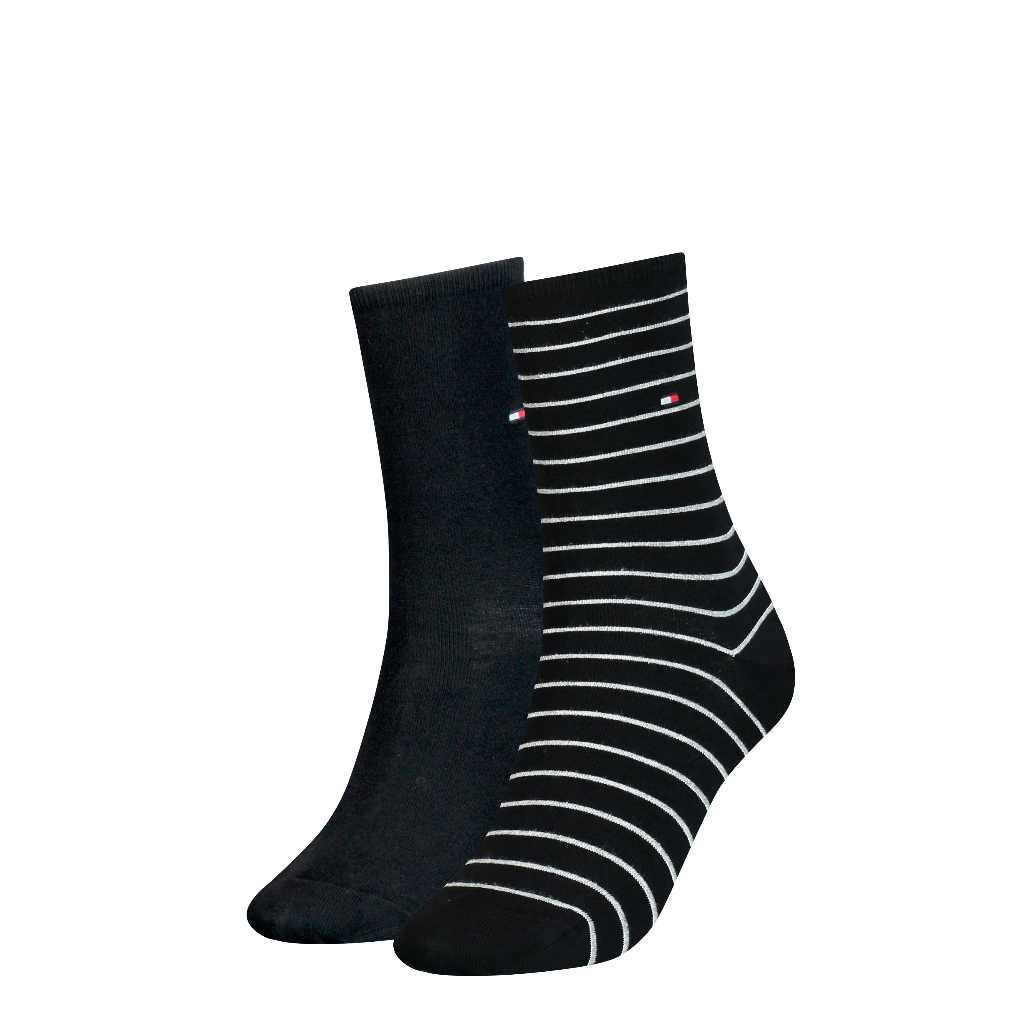 Tommy Hilfiger 2 Pack Womens Crew Stripe Socks Black