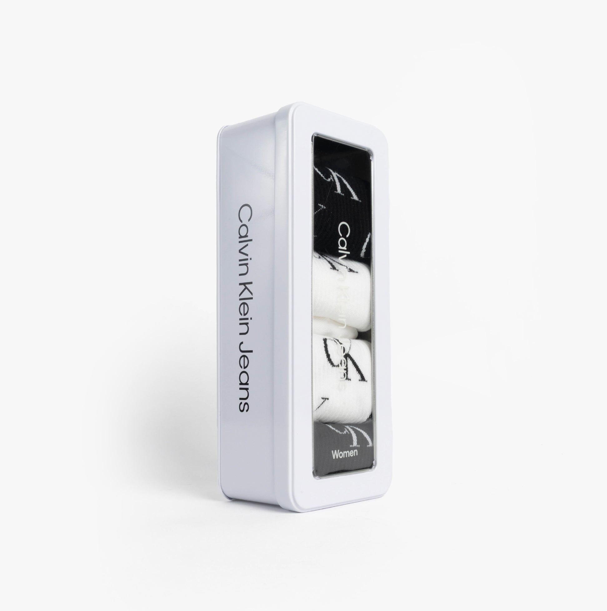 Calvin Klein 4 Pack Giftboxed Trainer Womens Crew Socks Black/White