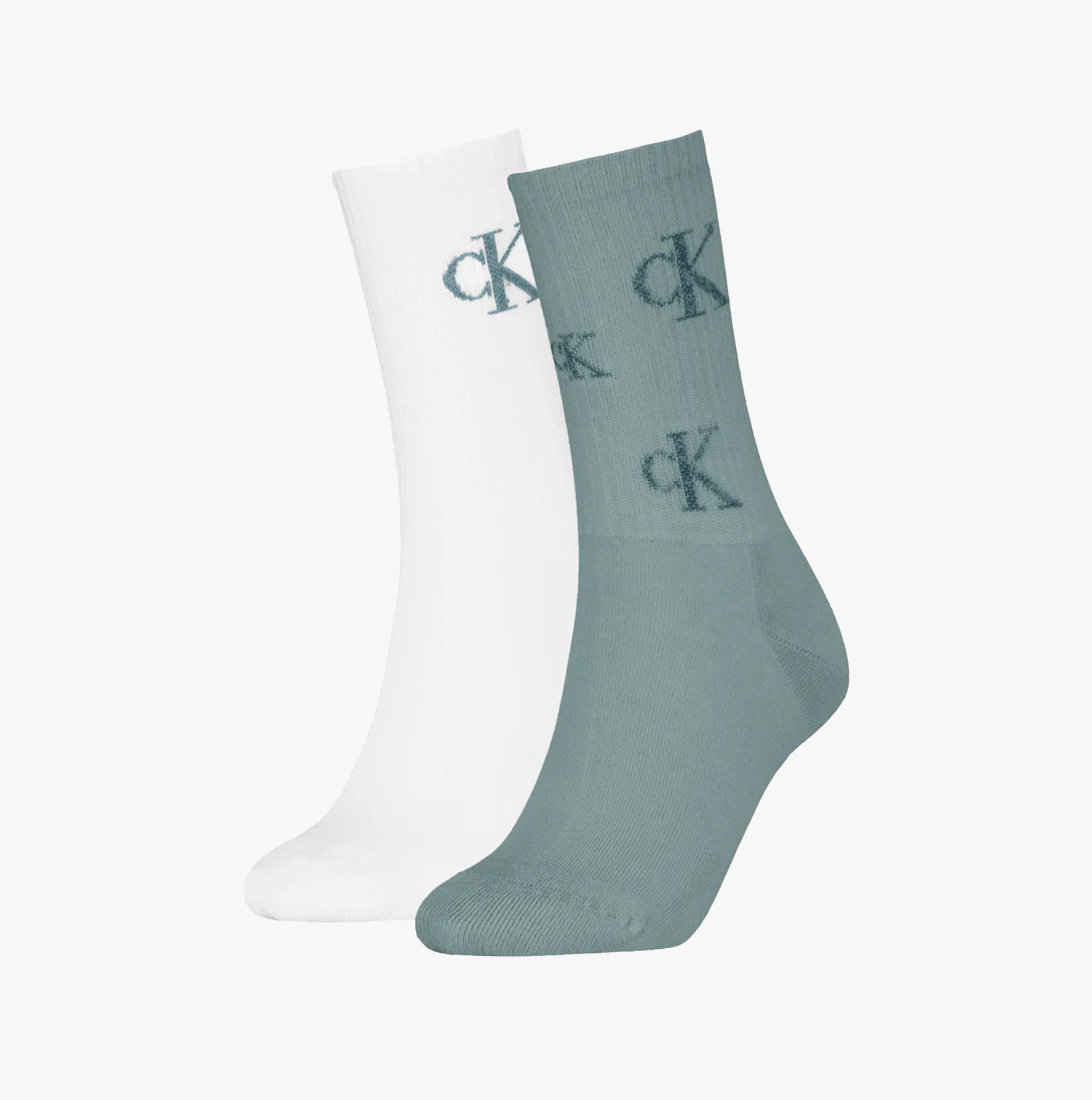 Calvin Klein 2 Pack Logo Trainer Womens Crew Socks Green/White