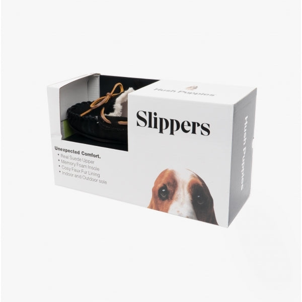 Hush Puppies ADDISON Kids Suede Moccasin Slippers Black