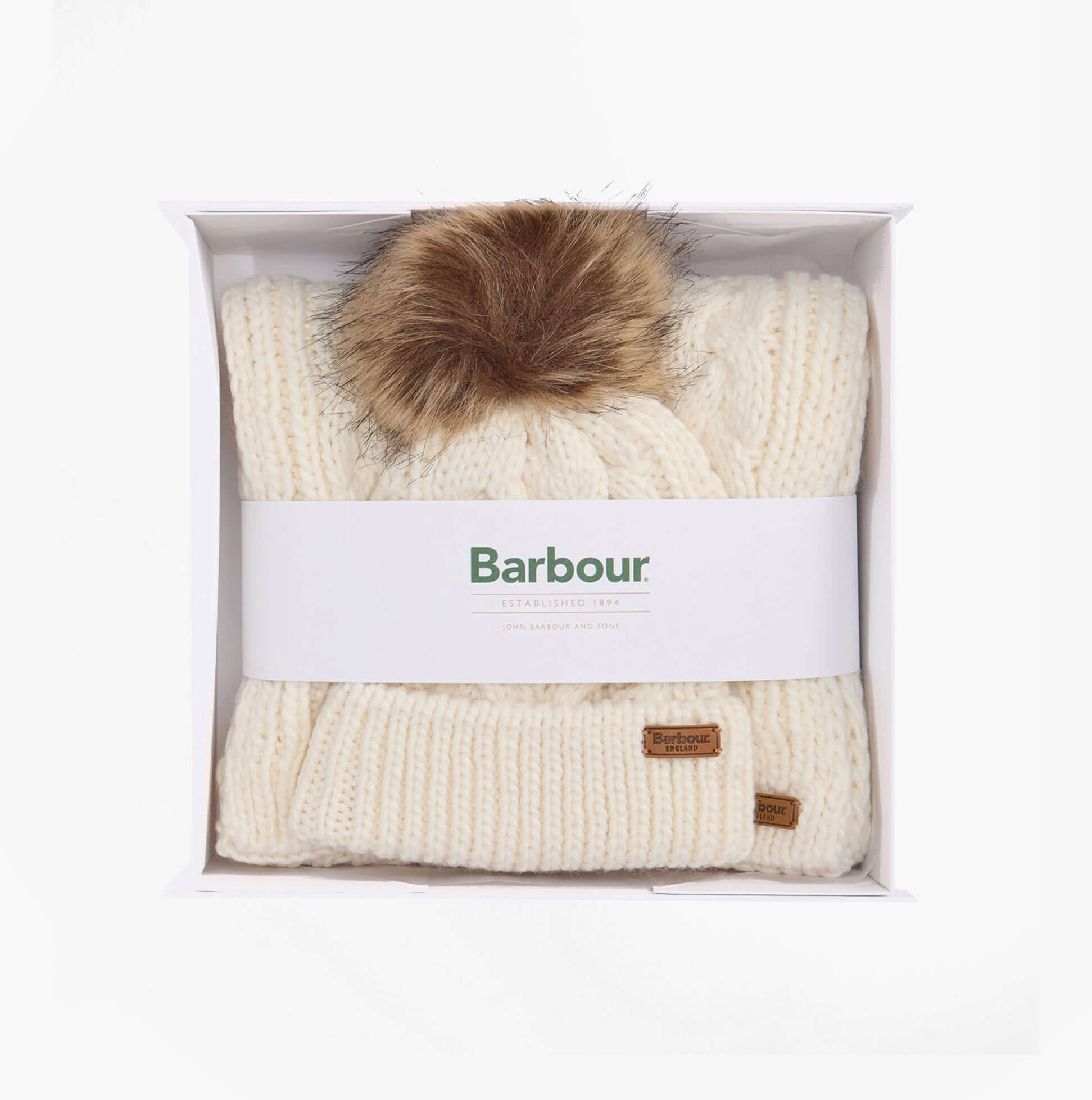 Barbour PENSHAW BEANIE & SCARF Gift Set Womens Cloud