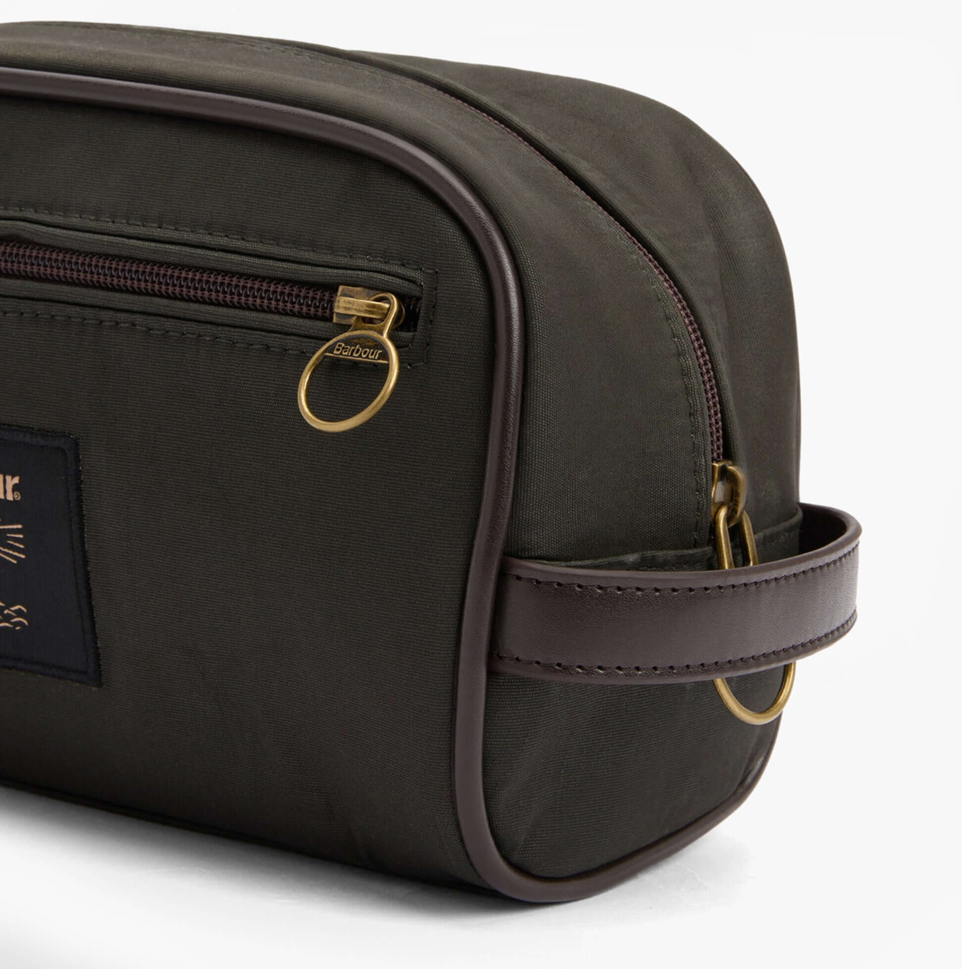 Barbour WAXED Mens Washbag Olive/Beacon