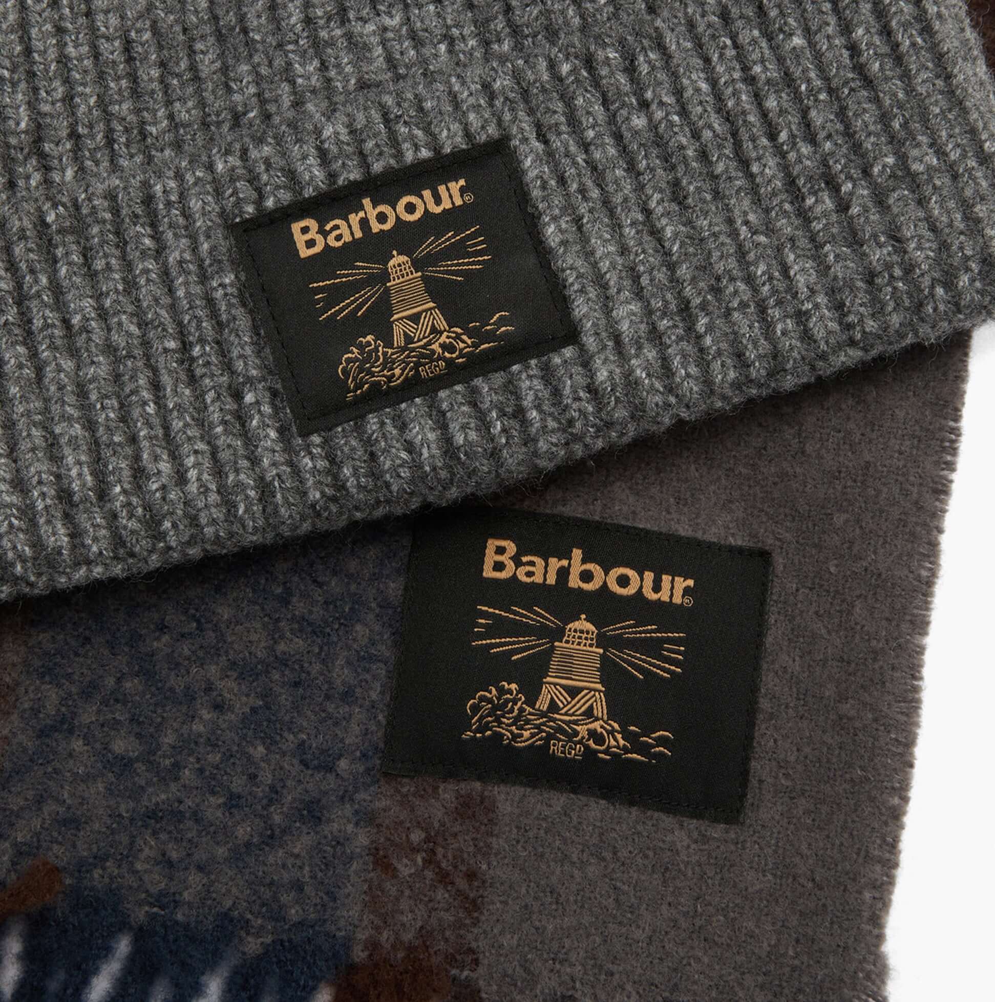 Barbour WESTERDALE BEANIE & SCARF Mens Gift Set Midnight Oak