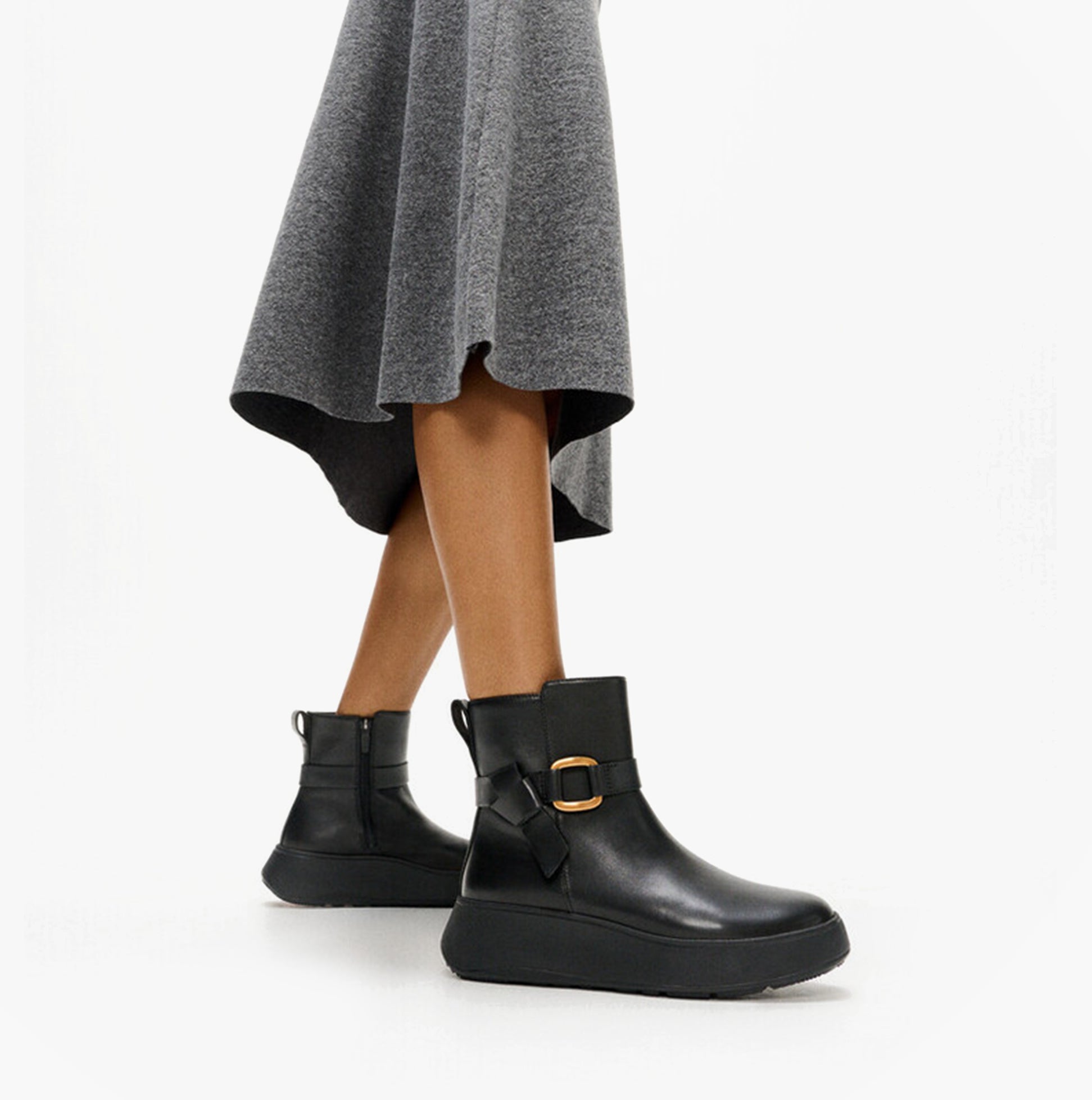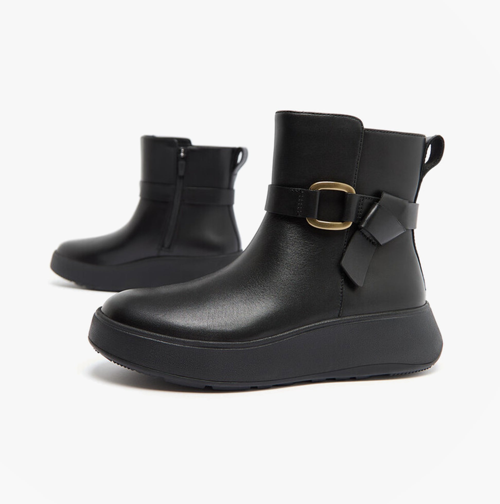 FitFlop F-MODE SQUARE-RING LEATHER FLATFORM Ladies Ankle Boots Black