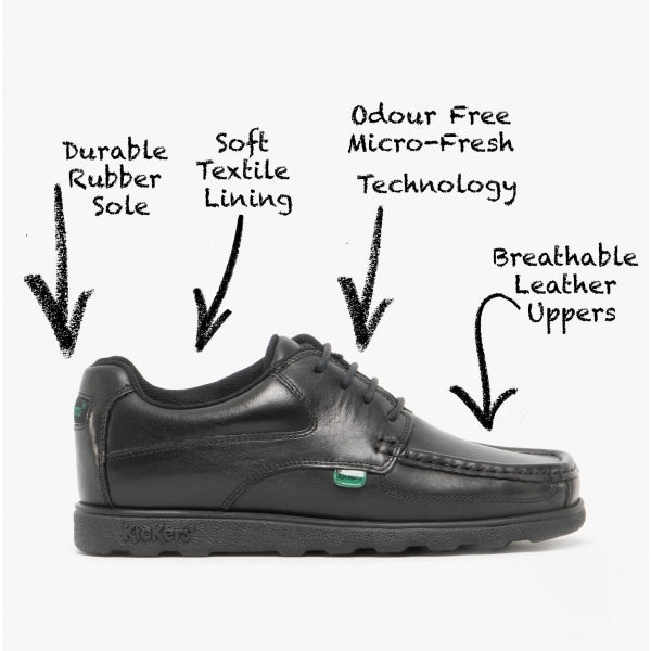 Kickers 114243 FRAGMA LACE 4 EYE Boys School Shoes Black