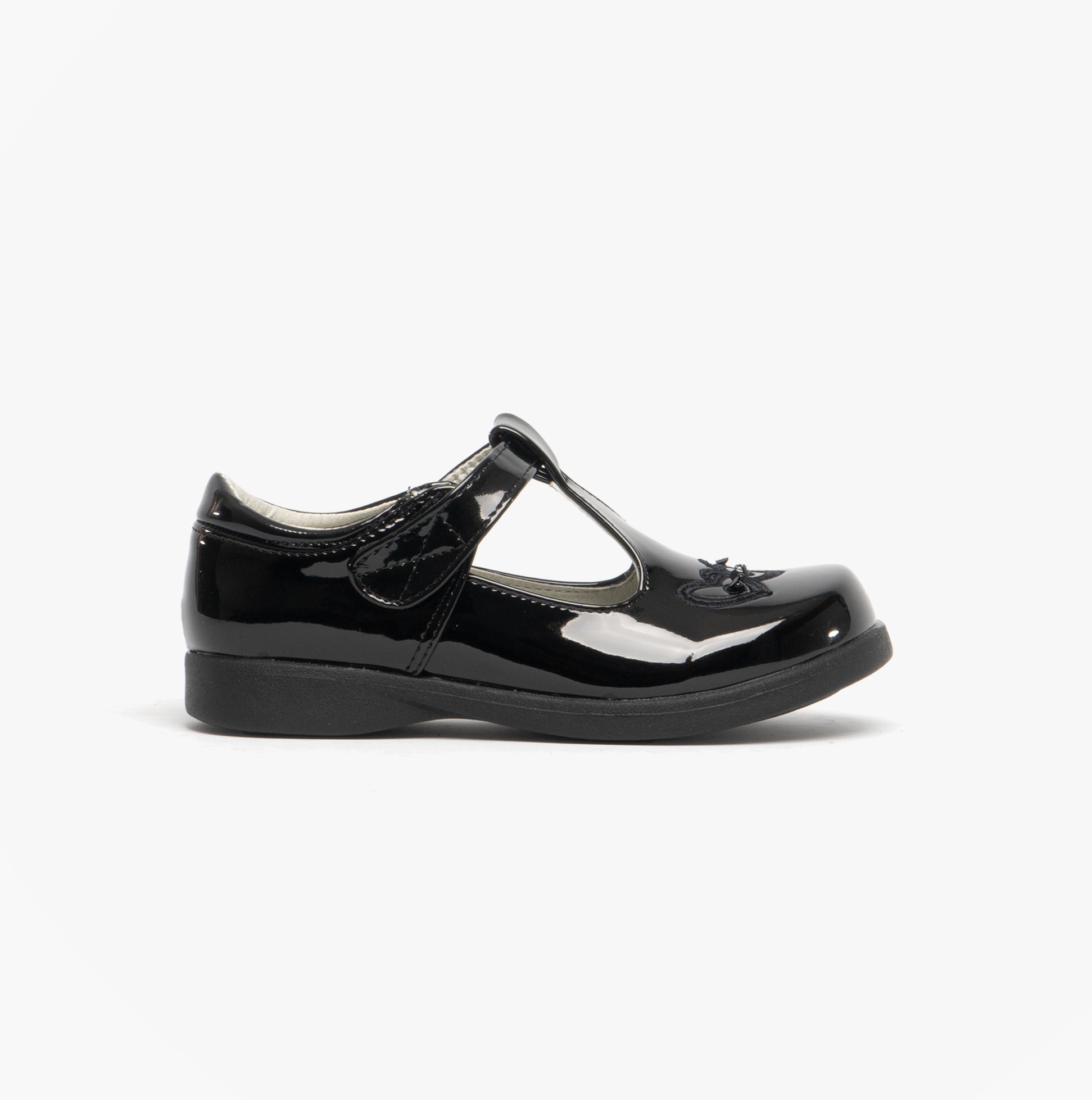 Boulevard Girls Touch Fasten T-Bar School Shoes Black Patent
