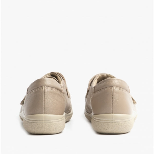 DB Shoes HEALEY Womens Leather Extra Wide (2E) Touch Fasten Shoes Champagne