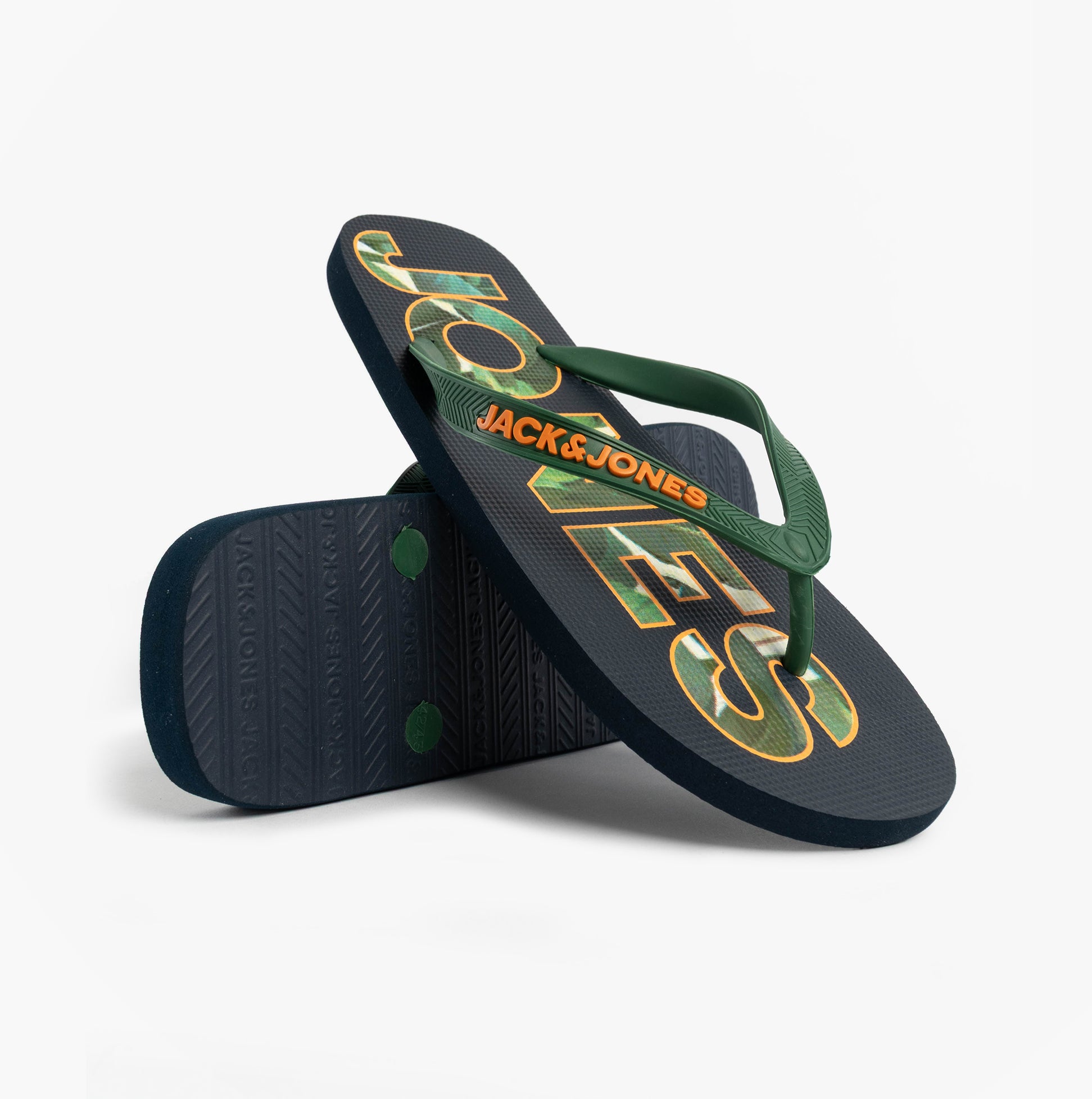 Jack & Jones LOGO PALM PRINT Mens Flip-Flops Navy Blazer