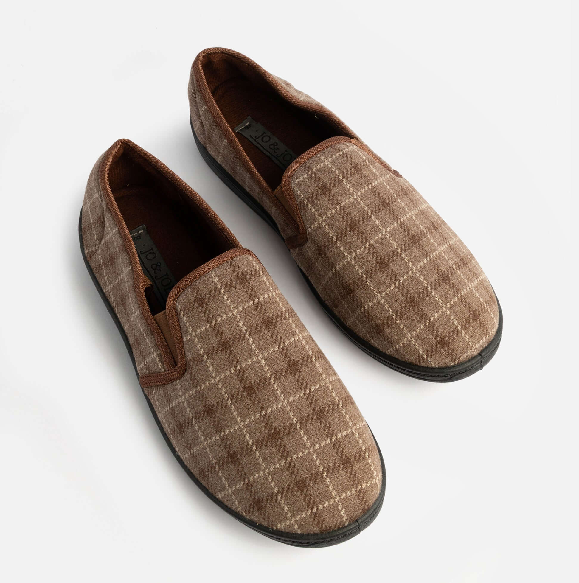 Jo & Joe GORDON Mens Full Slippers Checkered Brown