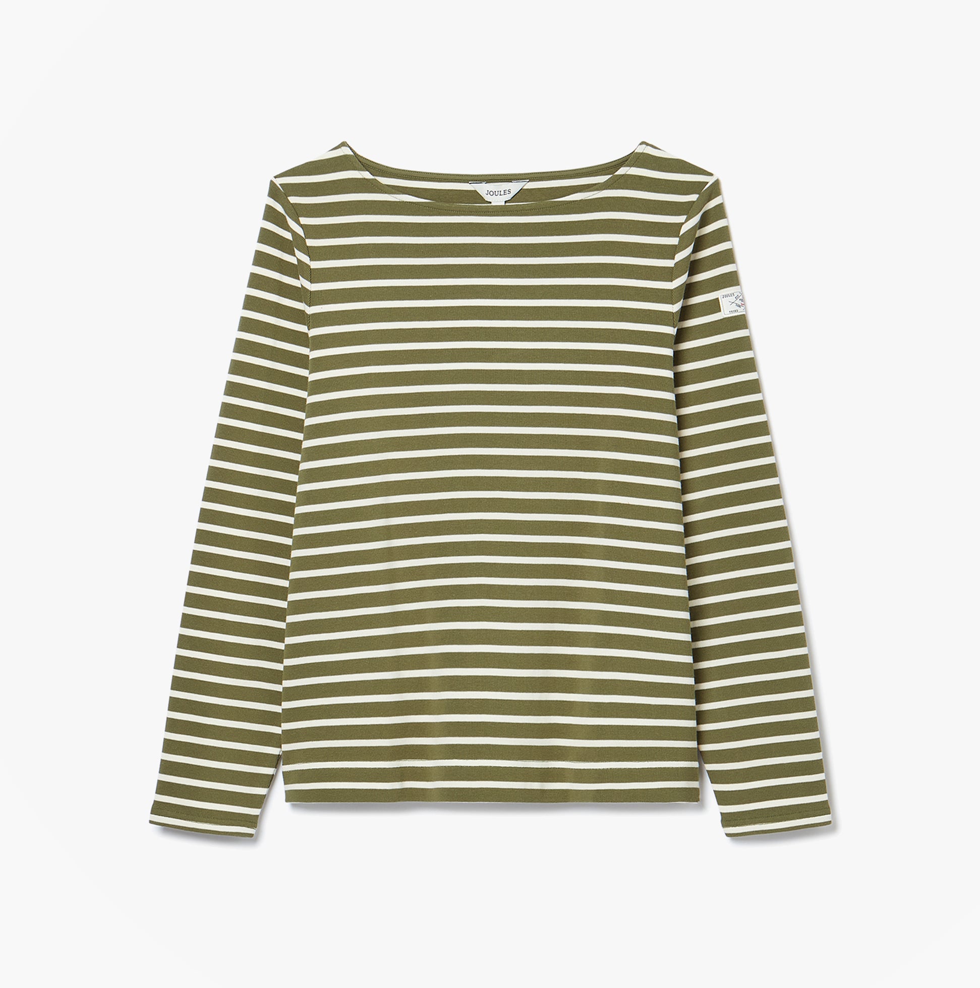 Joules HARBOUR Boat Neck 100% Cotton Breton Top Green Stripe