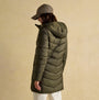 Joules MOORSDALE Womens Mid Length Showerproof Padded Coat with Hood Khaki