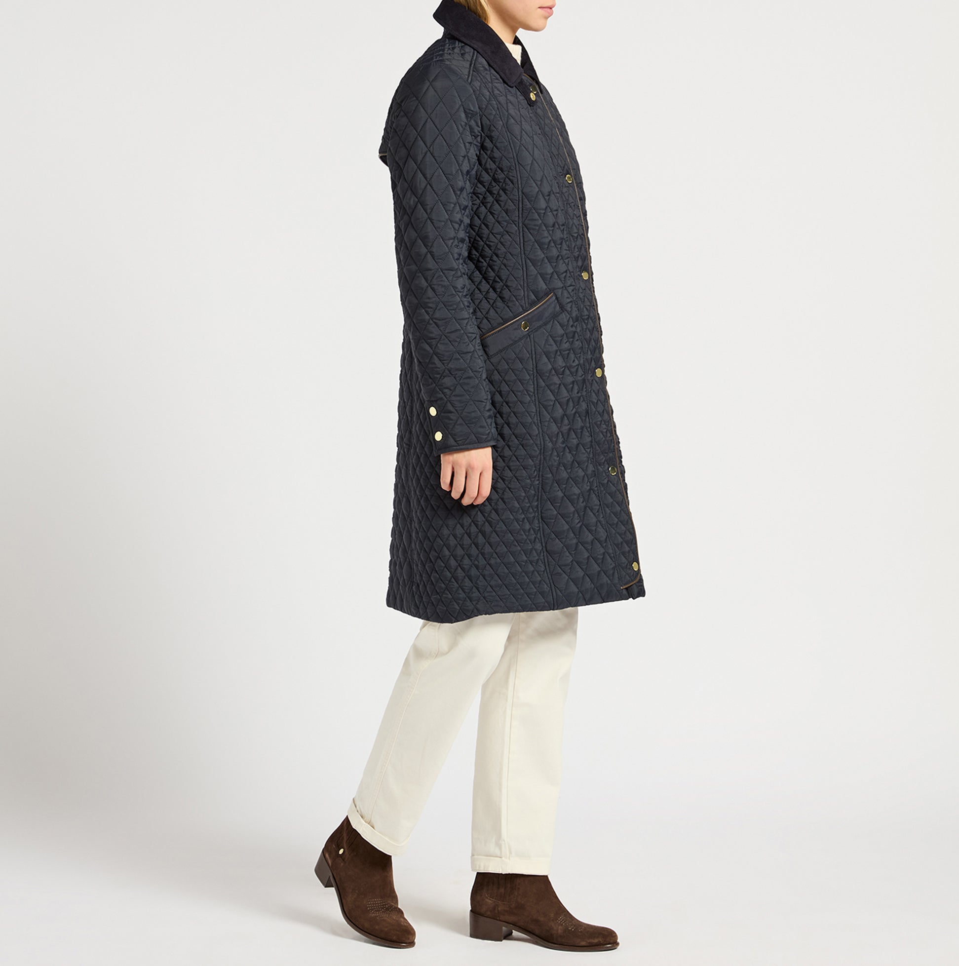 Joules ROSEWELL Longline Quilted Showerproof Coat with Collar Navy