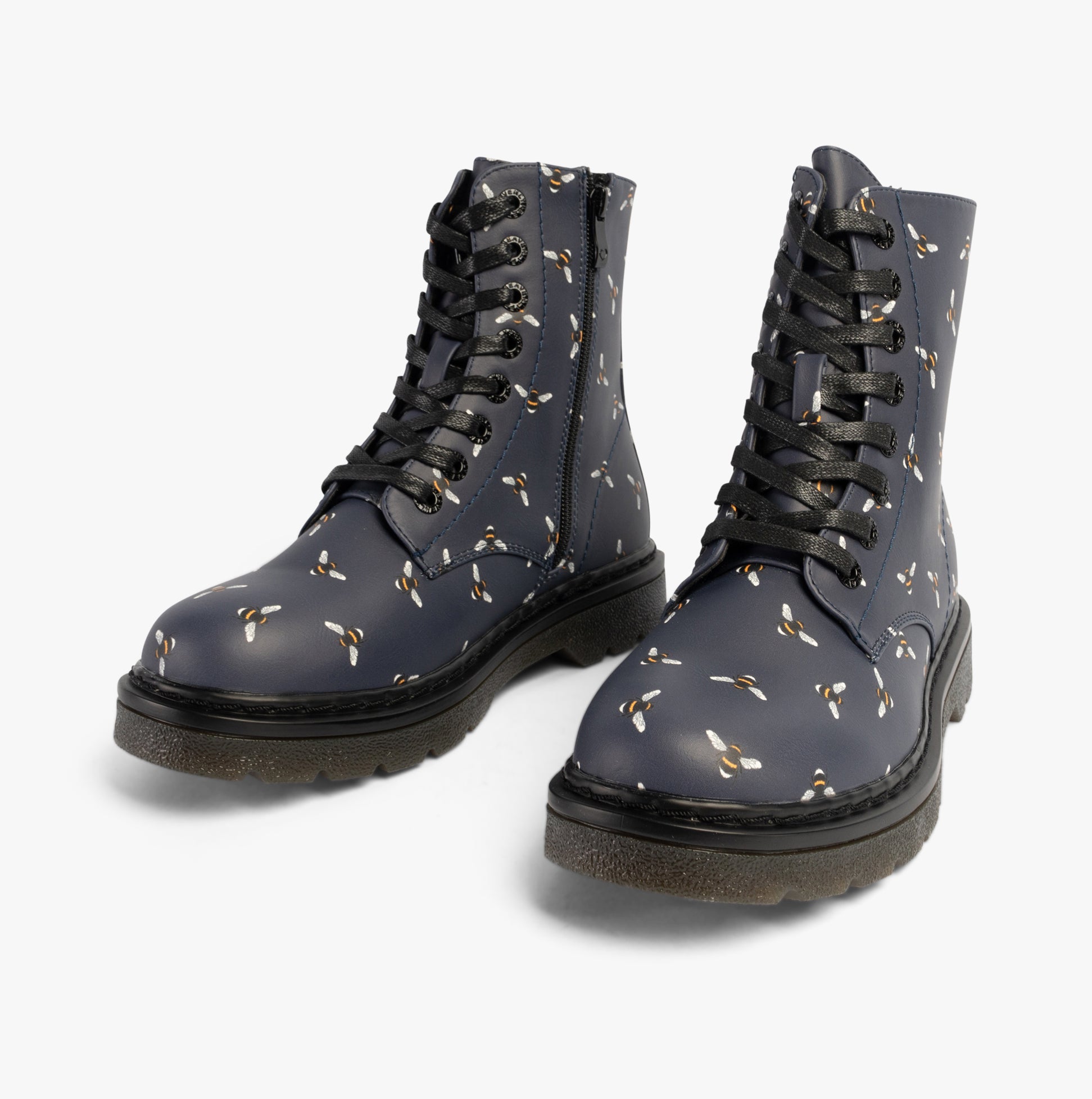 Heavenly Feet JUSTINA2 NEW BEE PRINT Womens Lace Up Boots Midnight