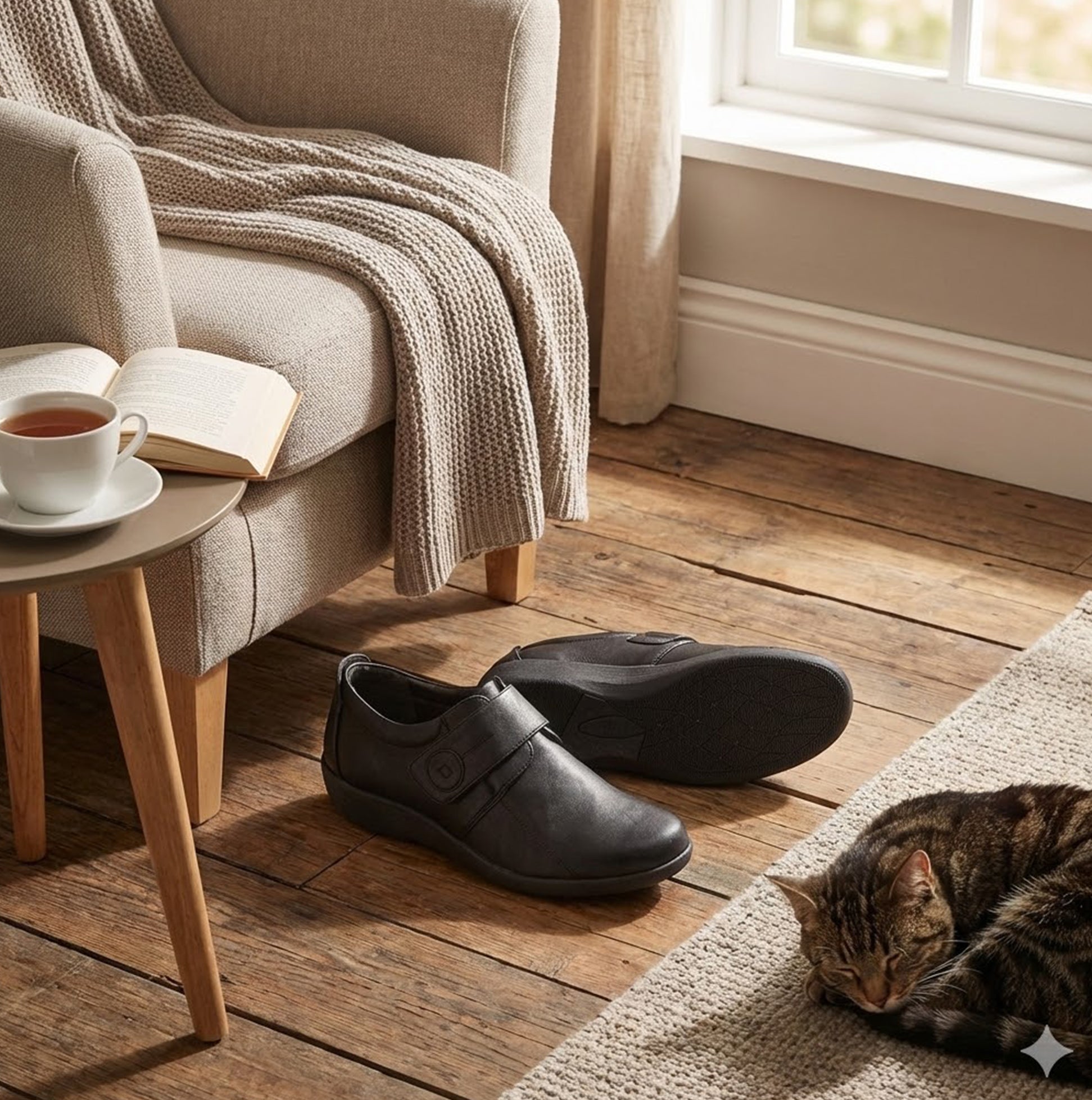 Boulevard L429A Womens Wide-Fit Touch Fasten Shoes Black