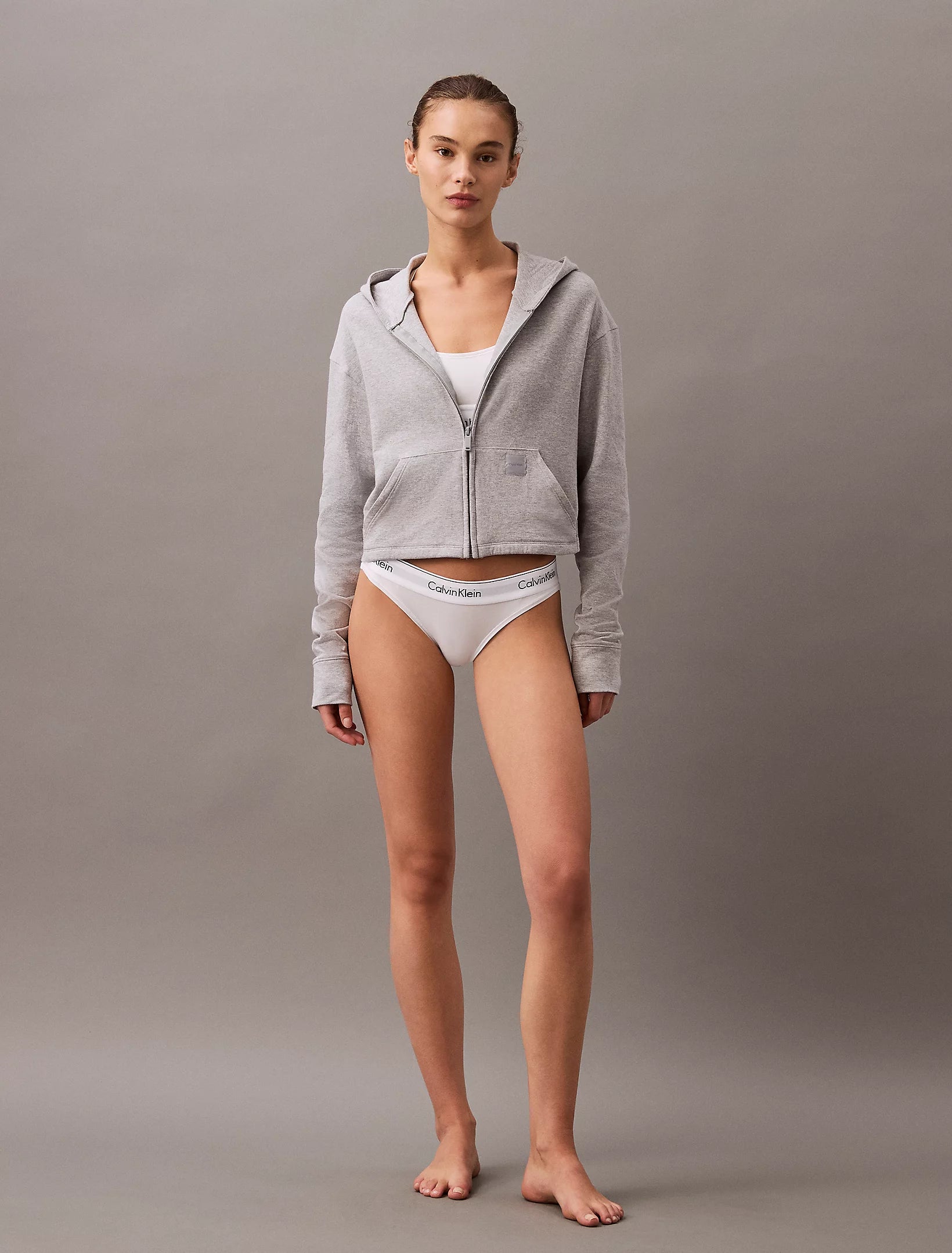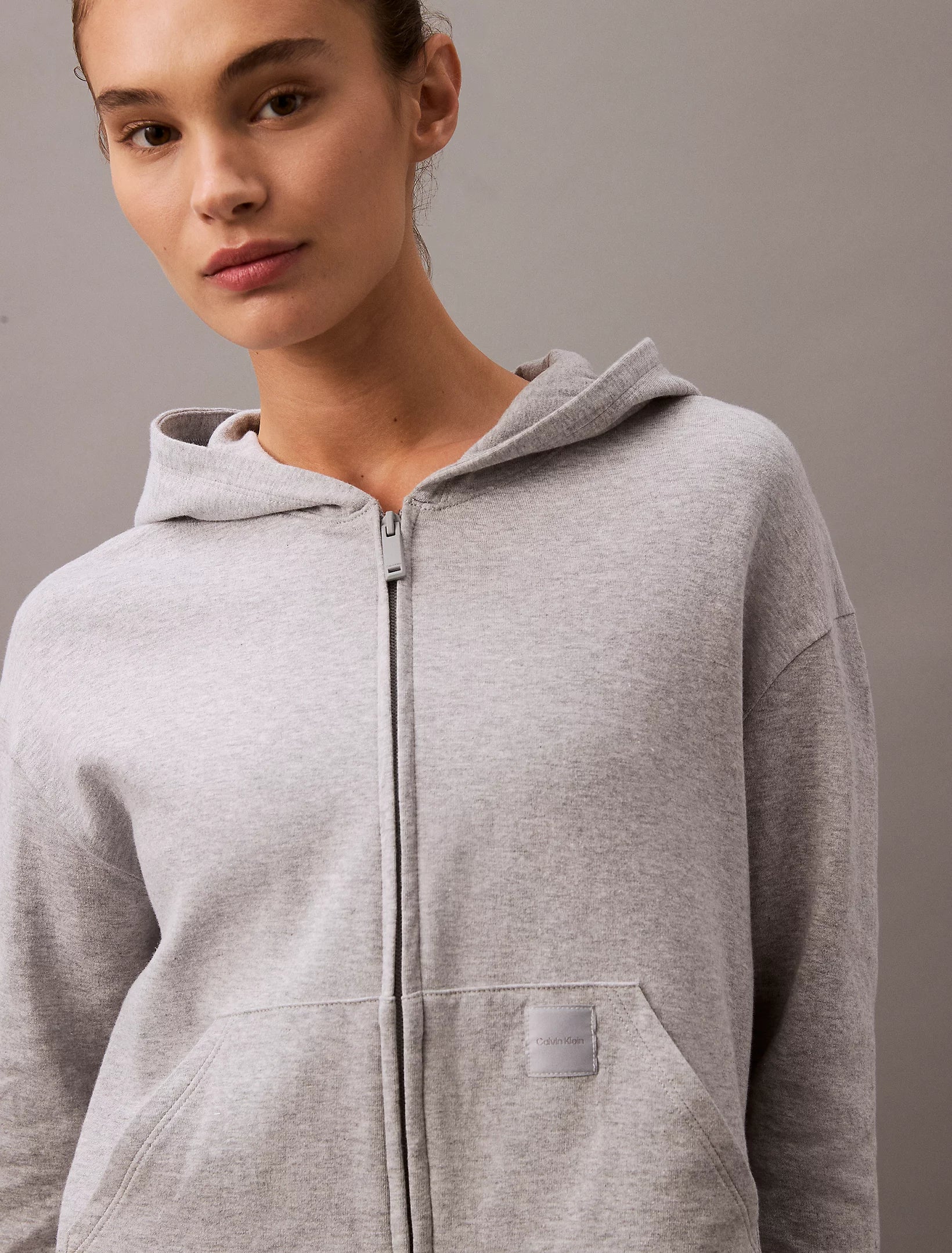 Calvin Klein MODERN TERRY Womens Full Zip Hoodie Grey Heather