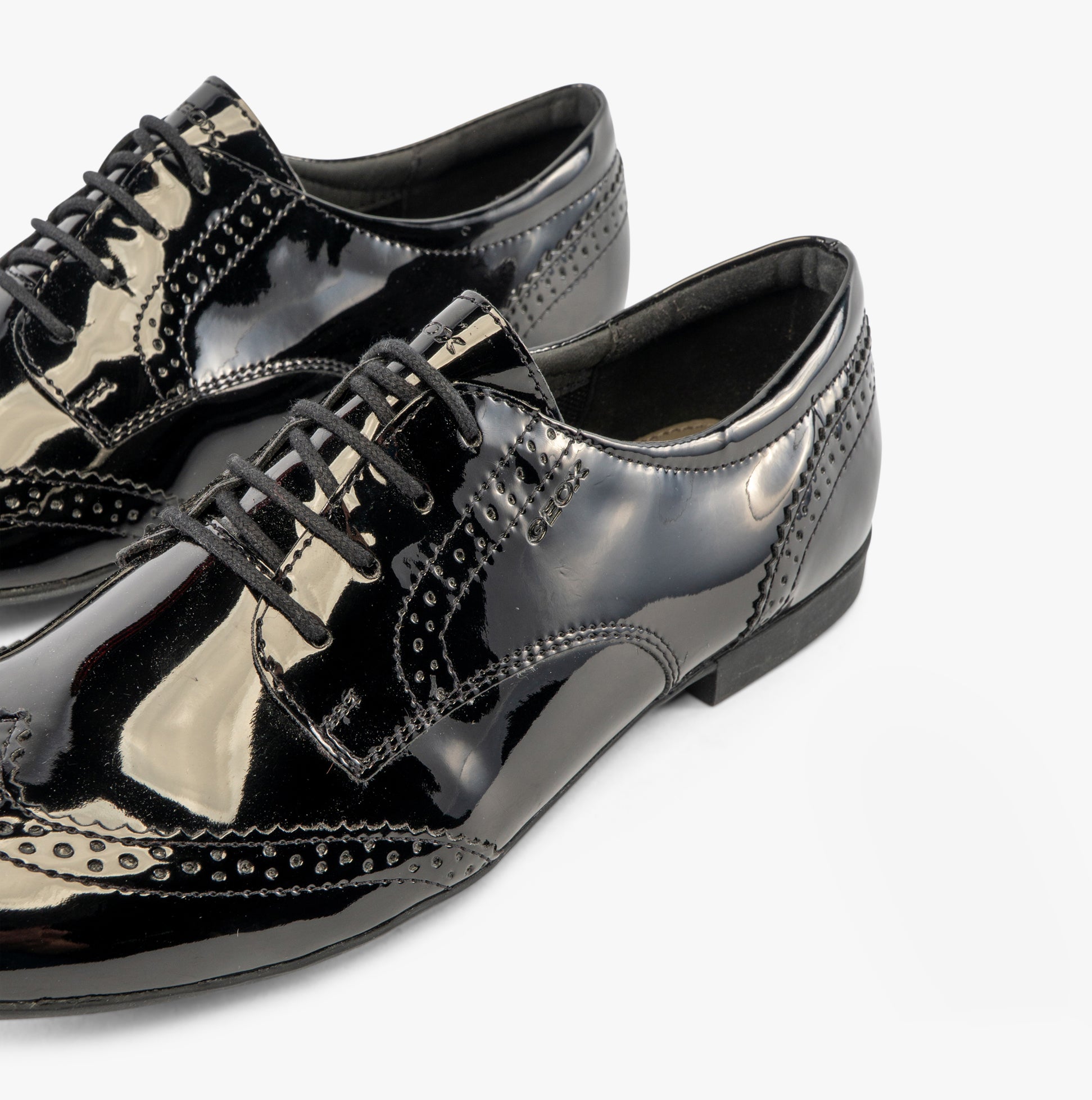 GEOX PLIE B Girls Lace Up School Shoes Patent Black