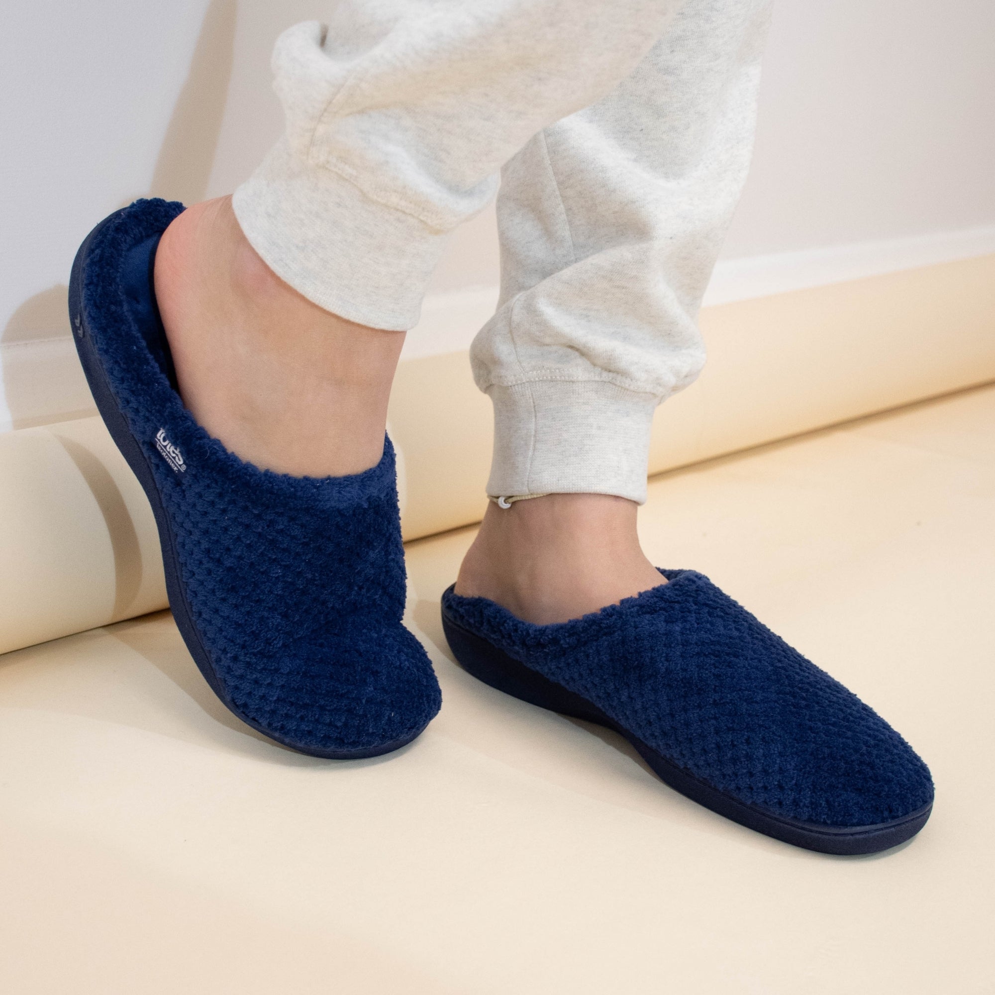 Totes Isotoner POPCORN TERRY Womens Mule Slippers Navy