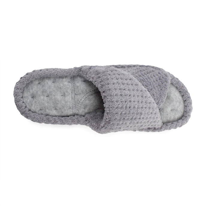 Totes Isotoner POPCORN TURNOVER OPEN TOE Womens Mule Slippers Pale Grey