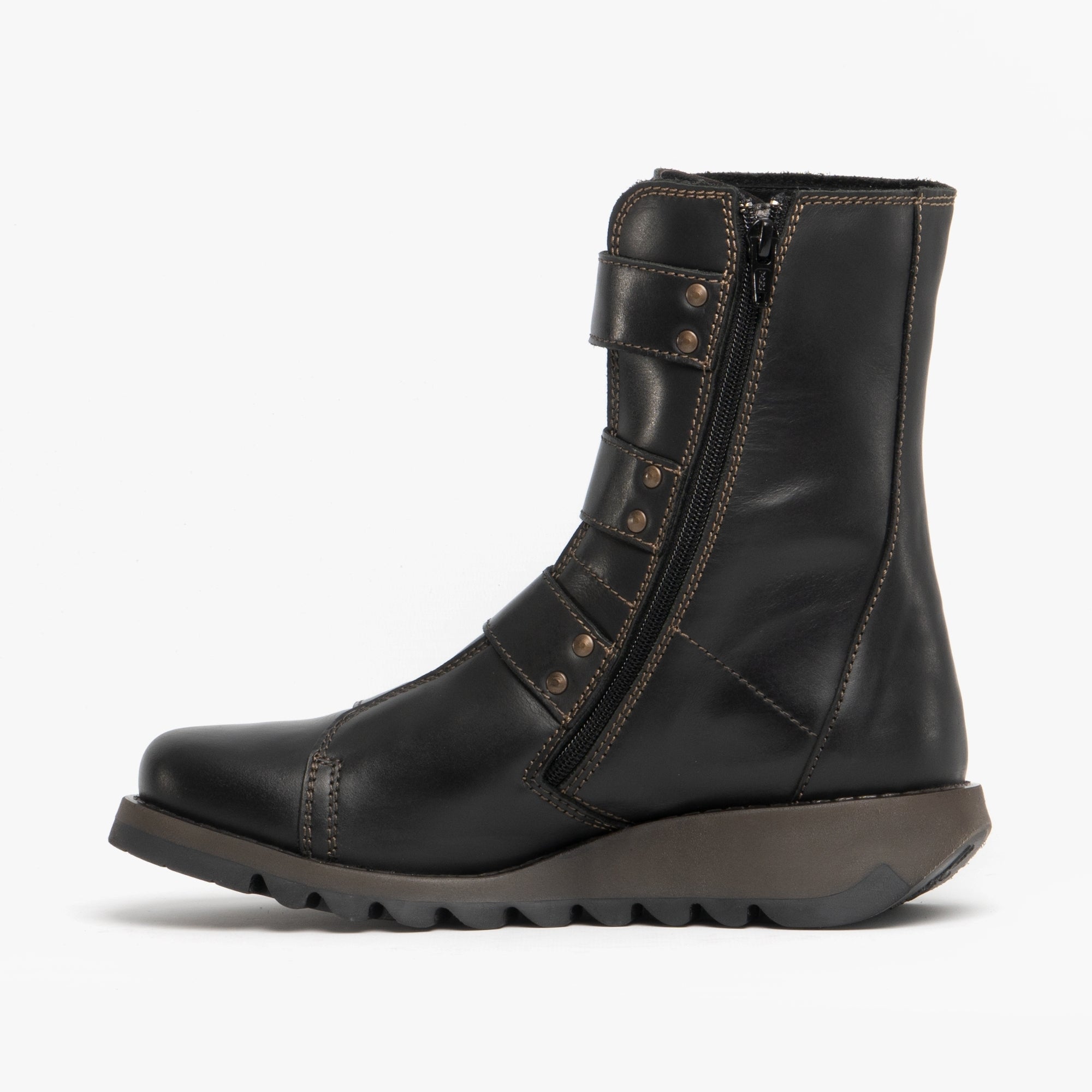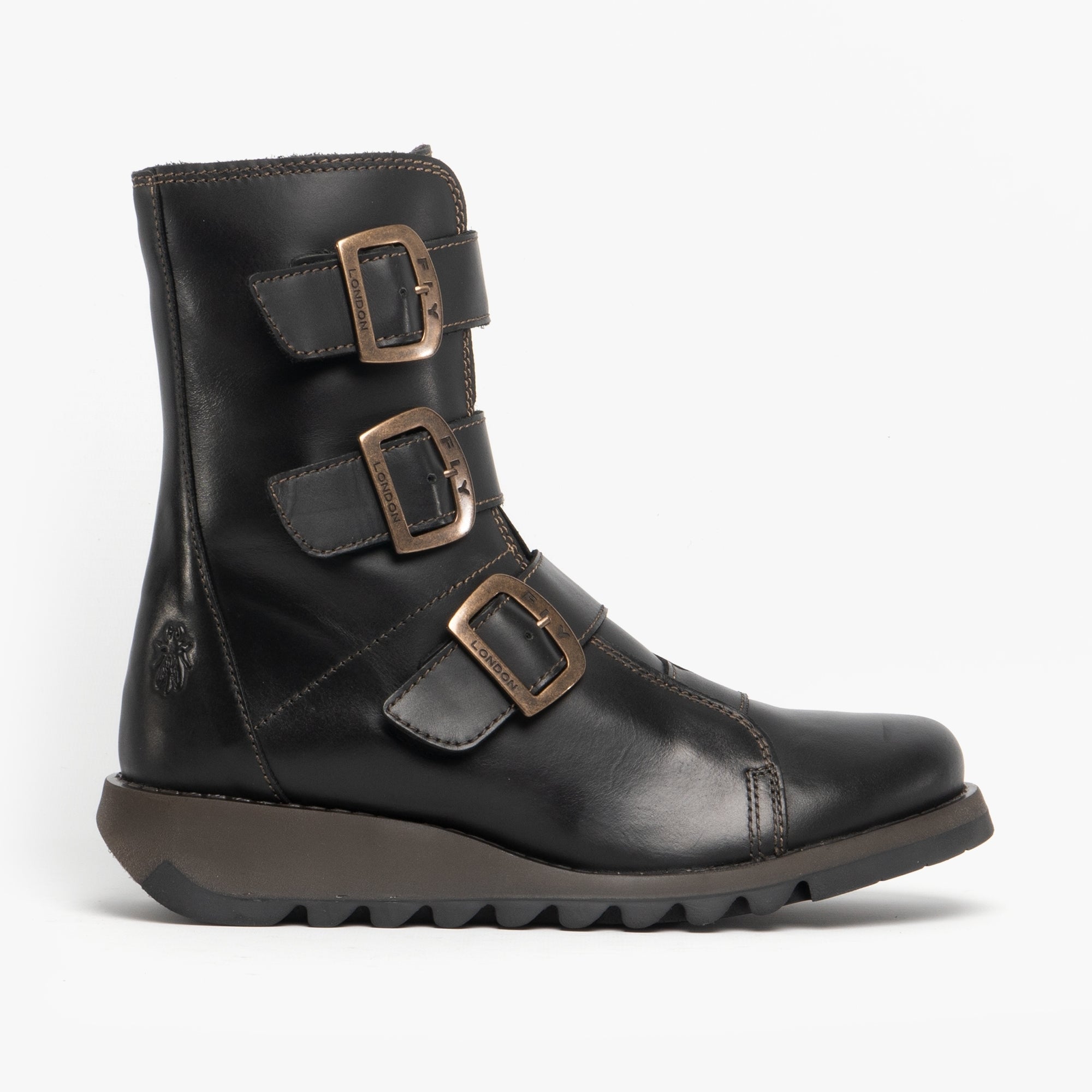 Fly London SCOP110FLY Womens Leather Wedge Ankle Boots Black
