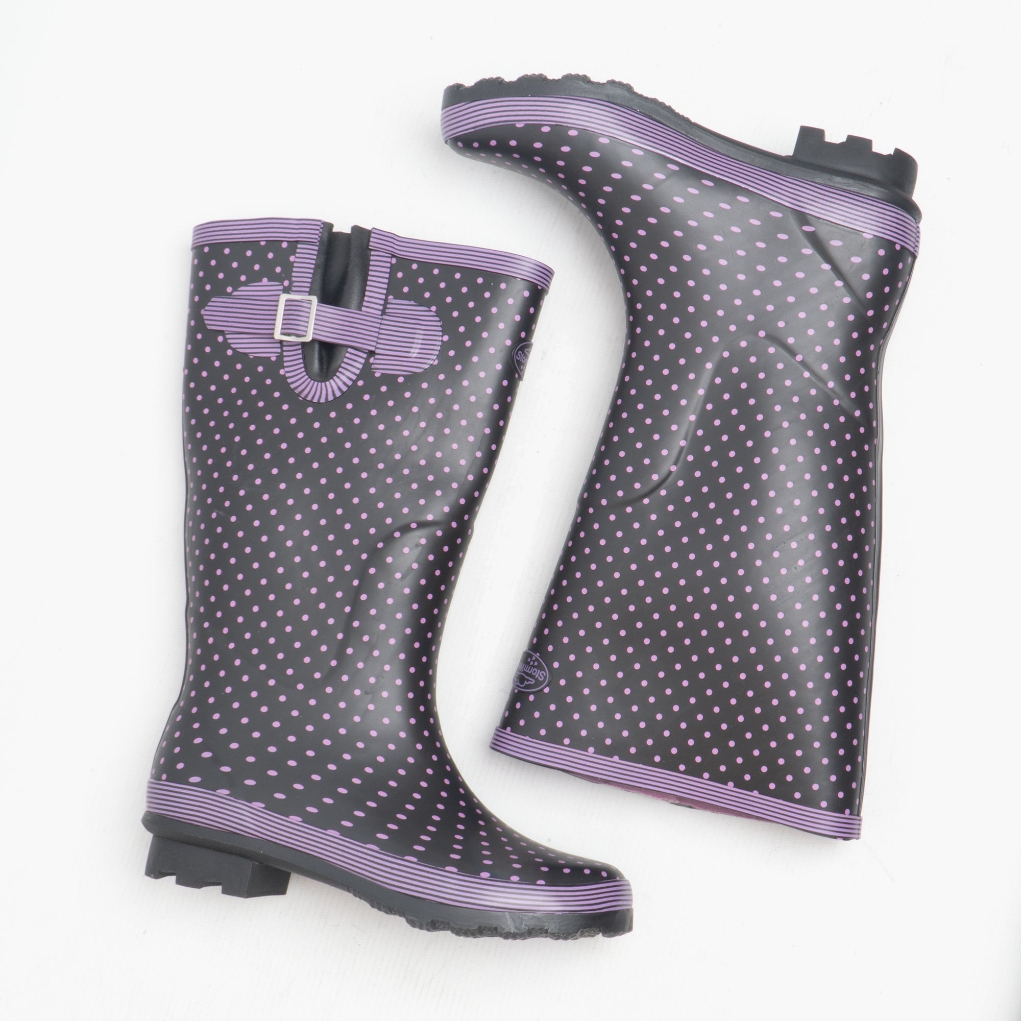 Stormwells WEAMELL Womens Wellington Boots Mauve Polka Dot/Navy
